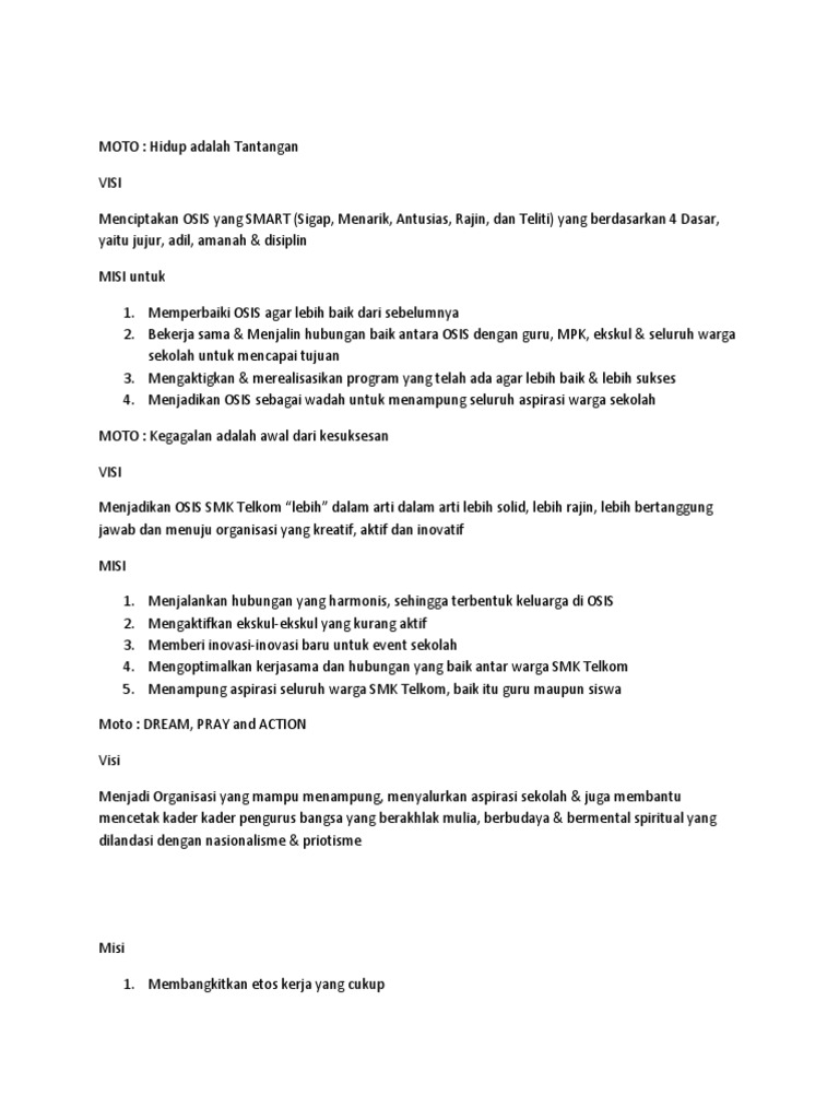 Maybe you would like to learn more about one of these? Visi dan misi menjadi osis. Check spelling or type a new query. We did not find results for: